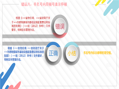 標(biāo)點(diǎn)符號(hào)是輔助文字記錄語(yǔ)言的一種工具,通常用來(lái)表示停頓、語(yǔ)氣以及詞語(yǔ)的性質(zhì)和作用。適當(dāng)?shù)臉?biāo)點(diǎn)符號(hào)能夠給文章增加美感與感情色彩,讓讀者更深層次的體會(huì)寫(xiě)作者想要表達(dá)的中心思想。標(biāo)點(diǎn)符號(hào)運(yùn)用不當(dāng),不僅會(huì)影響公文質(zhì)量,還會(huì)有損公司整體形象,小標(biāo)點(diǎn)可以“撬動(dòng)”大文章,公文處理人員不可掉以輕心。
