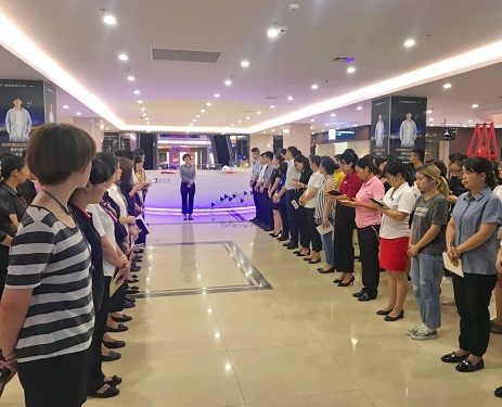 首先,于總主持了業(yè)務(wù)部的大晨會(huì),對(duì)業(yè)務(wù)部全體員工及在場(chǎng)商戶定下了新的目標(biāo):“帶出一流的隊(duì)伍,創(chuàng)出一流的業(yè)績,展現(xiàn)一流的風(fēng)貌!”大家共事與武昌店這個(gè)高端賣場(chǎng)中,小到服裝禮儀、陳列迎賓,大到店面管理、日常銷售,都要對(duì)自己高標(biāo)準(zhǔn),嚴(yán)要求,力爭(zhēng)與武昌店的高端賣場(chǎng)形象相匹配。
