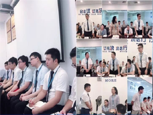 隨后,于總結(jié)合目前家居建材行業(yè)的最新動(dòng)向及多年的工作經(jīng)驗(yàn),向大家做了簡(jiǎn)單的分享,號(hào)召大家勤學(xué)習(xí),多動(dòng)腦,客戶需要定期維護(hù),銷售能力同樣需要日積月累,這樣才能成為賣場(chǎng)銷售的翹楚!同時(shí),于總號(hào)召大家打起精神,迎戰(zhàn)915活動(dòng),緊跟集團(tuán)和分公司的步伐,動(dòng)員商戶積極參與2018北京國際建材展暨設(shè)計(jì)博覽會(huì)。